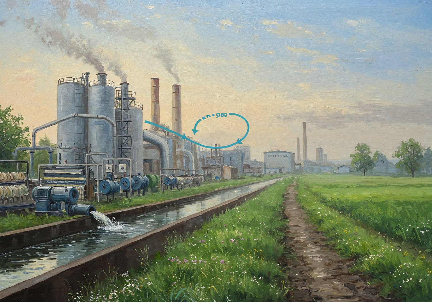 Impressionist painting, plein air, vibrant colors, capturing the moment, flickering light, visible short brush strokes, broken color technique, soft focus Impressionist painting, plein air, vibrant colors, capturing the moment, flickering light, visible short brush strokes, broken color technique, soft focus A modern industrial factory with a closed-loop water system: water enters minimally from a small pipe, flows through production machines in a textile dyeing area, chemical reactors, and food processing lines, then passes through purification units like reverse osmosis membranes, bioreactors, and IoT sensors, recirculating cleanly back into the system via looping pipes and arrows indicating endless cycle, with zero wastewater discharge and vibrant green surroundings symbolizing sustainability. ;Image without icons or texts. Style: Oil painting on canvas, impasto texture, thick layers of paint, high-key lighting, atmosphere of a hazy morning; ;Image without icons or texts. Style: Oil painting on canvas, impasto texture, thick layers of paint, high-key lighting, atmosphere of a hazy morning;